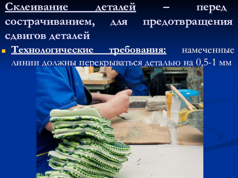 Слайд 51Склеивание деталей – перед сострачиванием, для предотвращения сдвигов деталей