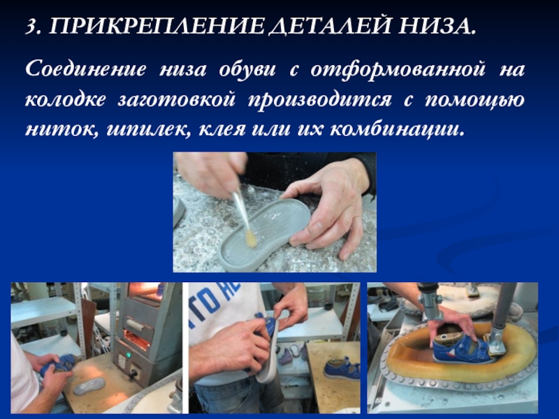 Слайд 60Методика прикрепления деталей низа и отделки обуви