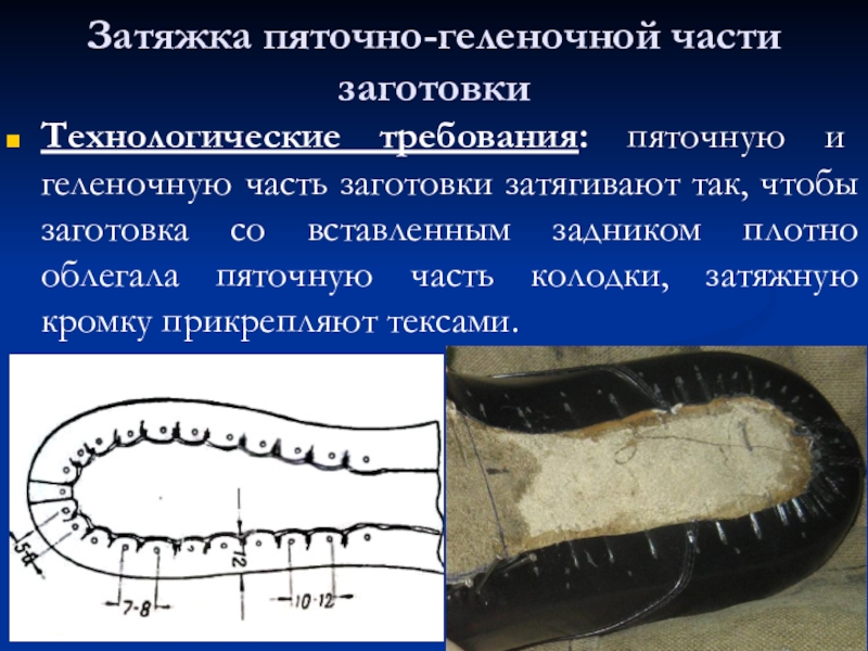 Технологические требования: пяточную и геленочную часть заготовки затягивают