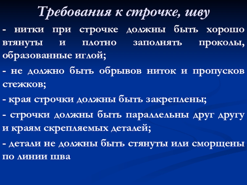 - строчки должны быть параллельны друг другу и краям скрепляемых деталей;