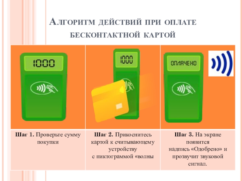 Слайд 8Алгоритм действий при оплате бесконтактной картой