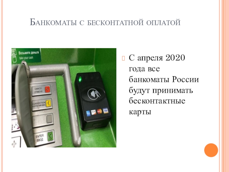 Банкоматы с бесконтатной оплатой С апреля 2020 года все банкоматы России будут принимать бесконтактные карты
