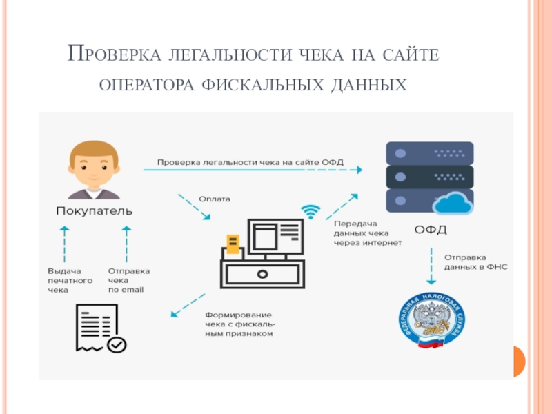 Слайд 6Проверка легальности чека на сайте оператора фискальных данных