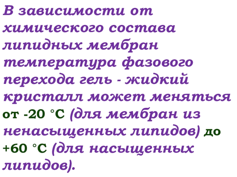 В зависимости от химического состава липидных мембран температура фазового перехода гель - жидкий кристалл может меняться от