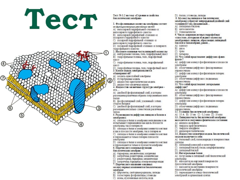 Слайд 1Физические и биологические свойства липидов в мембране, фазовые переходы