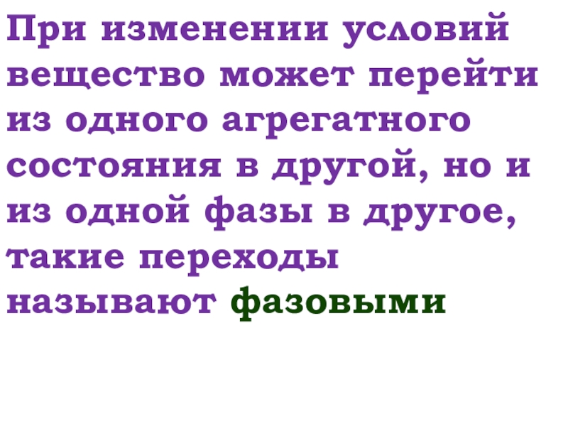 Слайд 13При изменении условий вещество может перейти из одного агрегатного состояния в