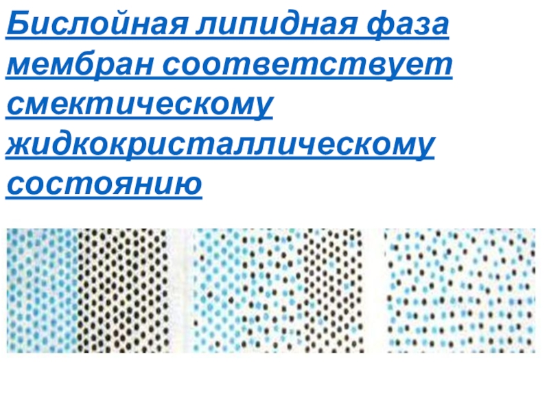 Слайд 12Бислойная липидная фаза мембран соответствует смектическому жидкокристаллическому состоянию
