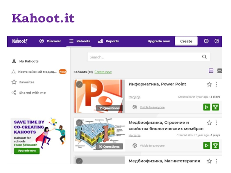 Это сайт презентаций, где можно хранить и обмениваться своими презентациями, докладами, проектами, шаблонами в формате PowerPoint с другими пользователями. Мы помогаем школьникам, студентам, учителям, преподавателям хранить и обмениваться учебными материалами.
