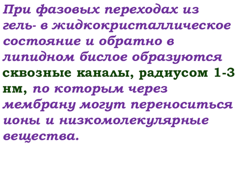 При фазовых переходах из гель- в жидкокристаллическое состояние и обратно в липидном бислое образуются сквозные каналы, радиусом