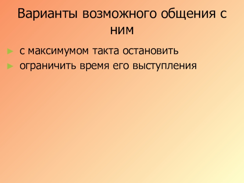 Варианты возможного общения с нимс максимумом такта остановитьограничить время его выступления