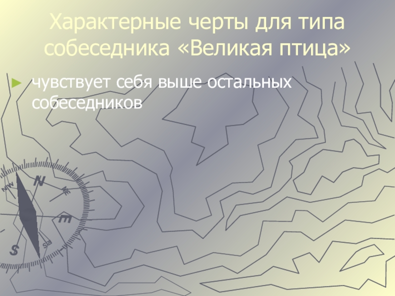 Слайд 24Характерные черты для типа собеседника «Великая птица»