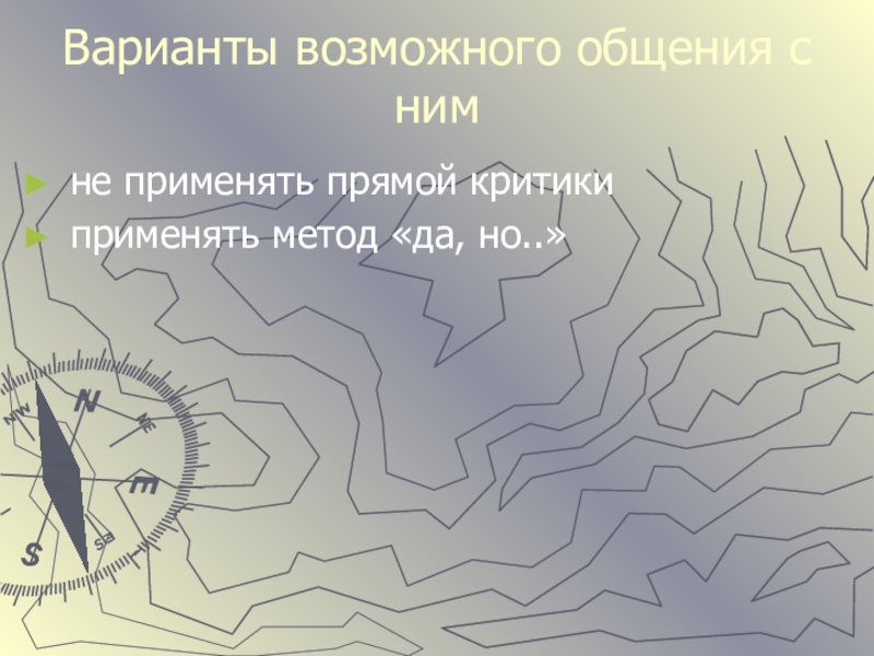 Варианты возможного общения с нимне применять прямой критикиприменять метод «да, но..»