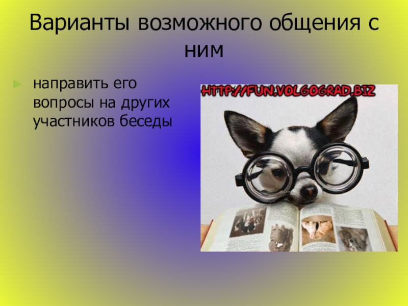 Варианты возможного общения с нимнаправить его вопросы на других участников беседы