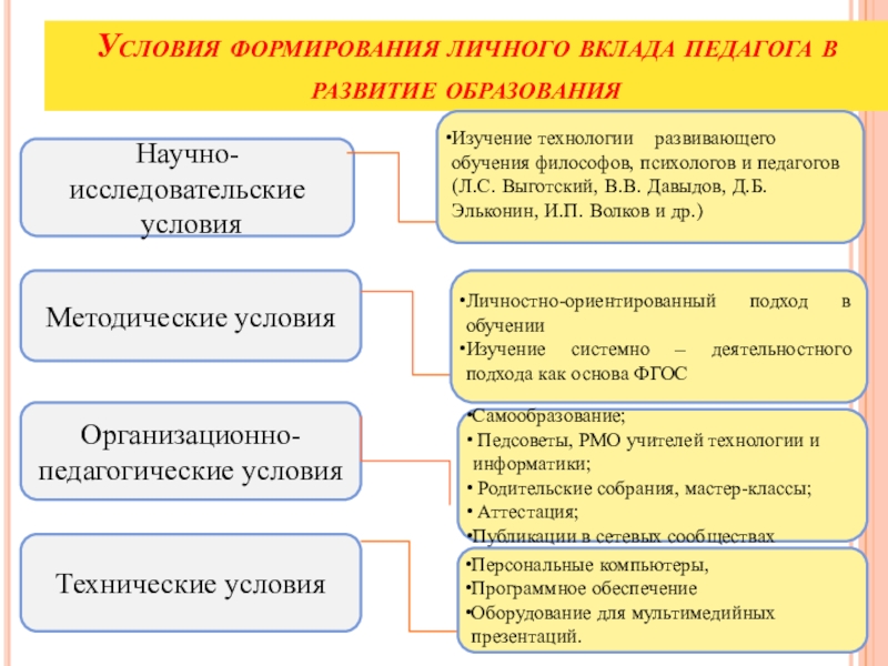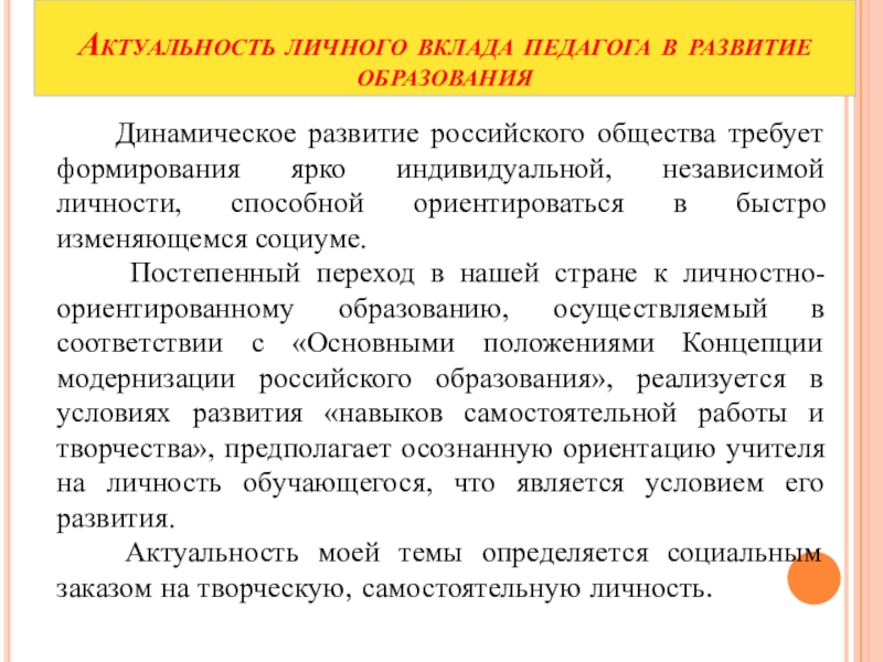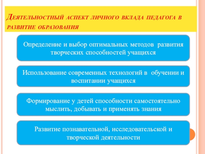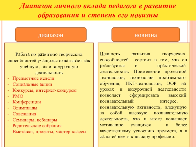 Диапазон личного вклада педагога в развитие образования и степень его новизны