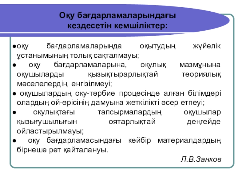 Оқу бағдарламаларындағы кездесетін кемшіліктер: