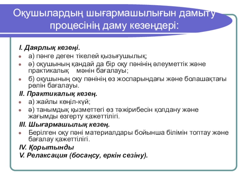 Оқушының шығармашылығын дамытуға бағытталған мектеп іс-әрекетінің құрылымдық жүйесi