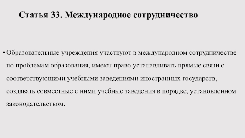 образования, имеют право устанавливать прямые связи с соответствующими учебными заведениями иностранных государств, создавать совместные с ними учебные заведения в порядке, установленном законодательством.