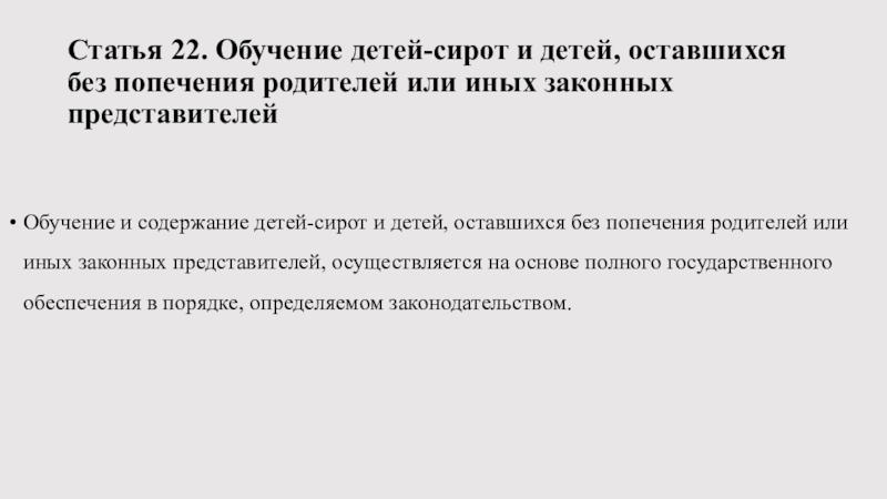 Слайд 21Статья 22. Обучение детей-сирот и детей, оставшихся