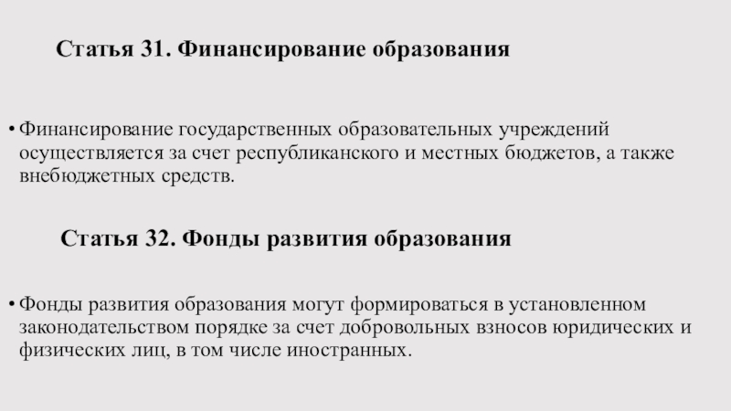 Финансирование государственных образовательных учреждений осуществляется за счет республиканского