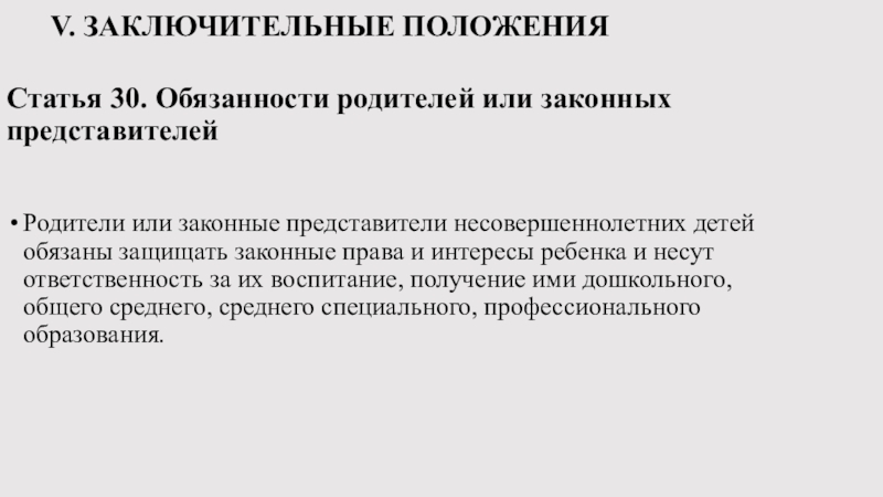 Слайд 29 V. ЗАКЛЮЧИТЕЛЬНЫЕ ПОЛОЖЕНИЯ