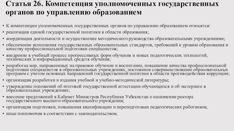 Слайд 25 Статья 26. Компетенция уполномоченных государственных