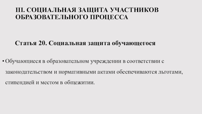 Слайд 19III. СОЦИАЛЬНАЯ ЗАЩИТА УЧАСТНИКОВ