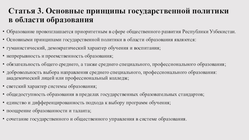 ТЕМА: «ЗАКОН РЕСПУБЛИКИ УЗБЕКИСТАН ОБ ОБРАЗОВАНИИ»