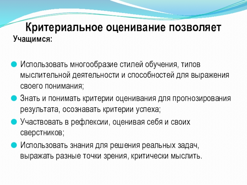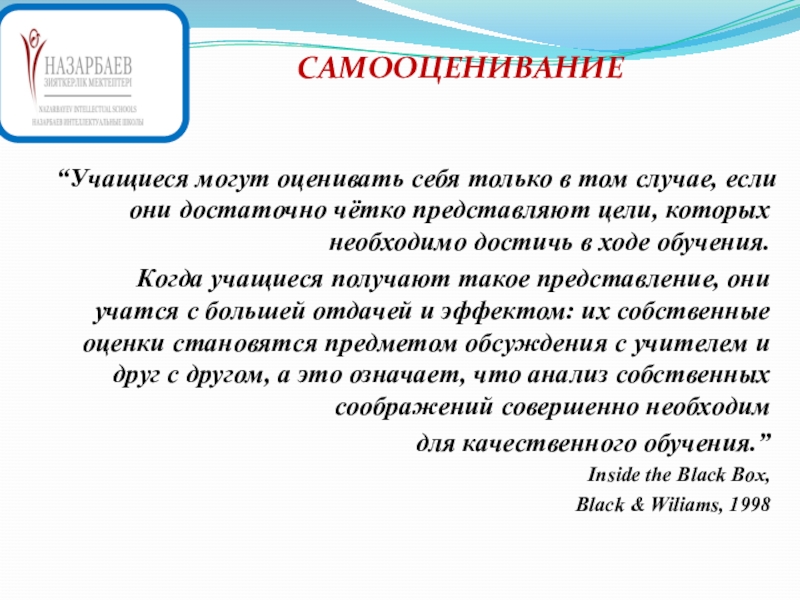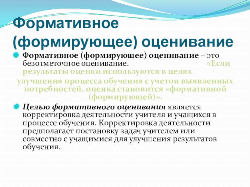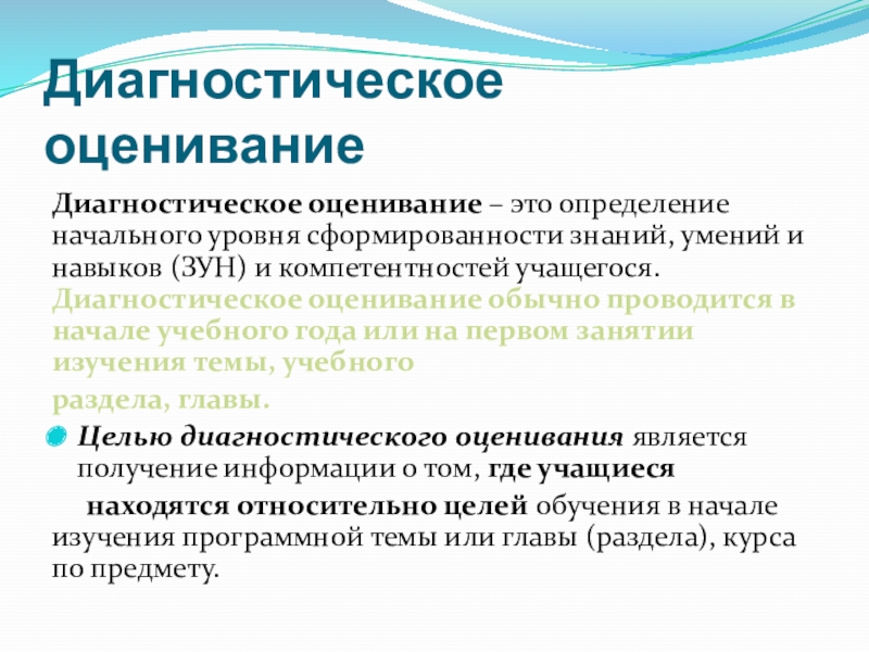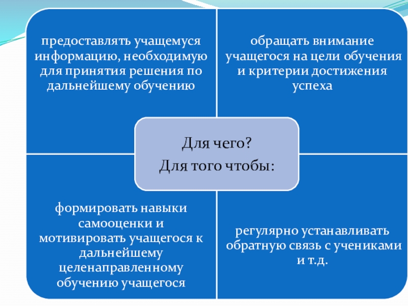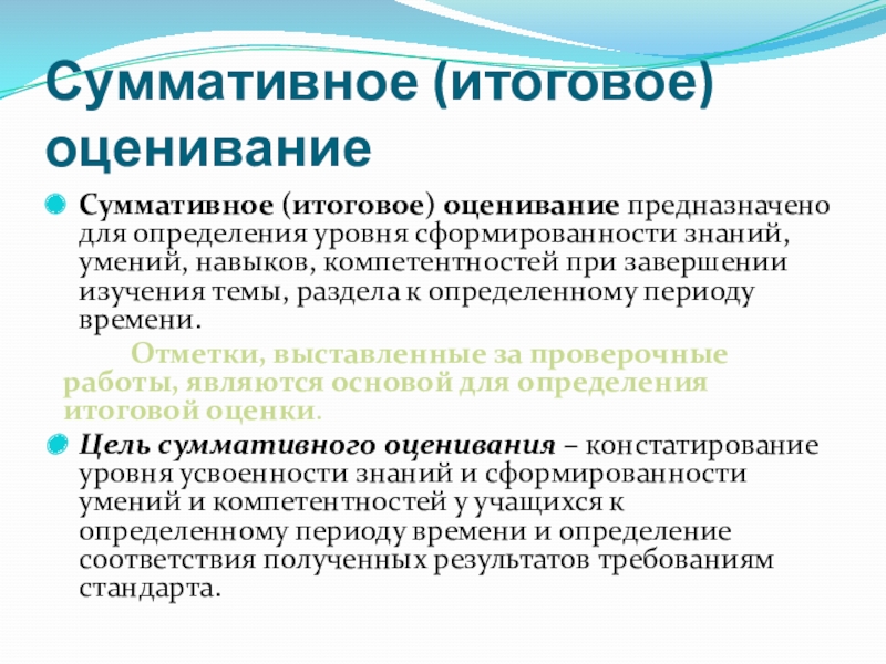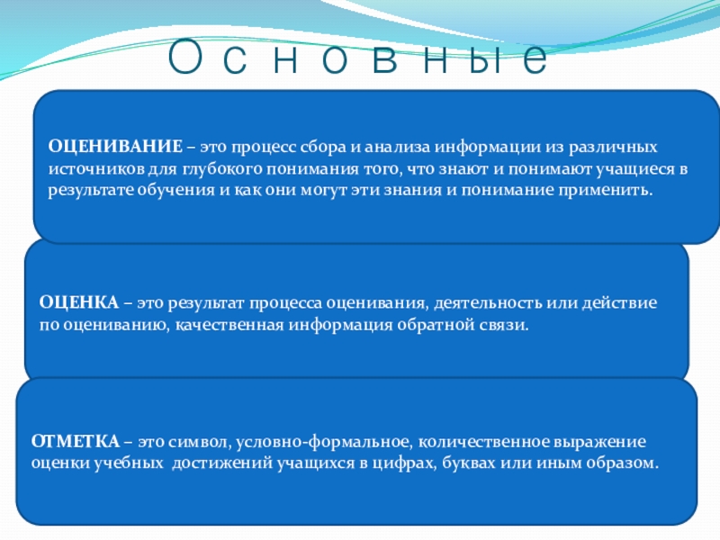 ОЦЕНИВАНИЕ – это процесс сбора и анализа информации из различных источников для глубокого понимания того, что знают и понимают учащиеся в результате обучения и как они могут эти знания и понимание применить.