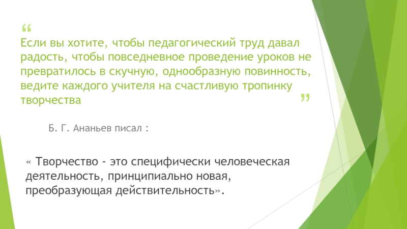 « Творчество - это специфически человеческая деятельность, принципиально новая, преобразующая действительность».