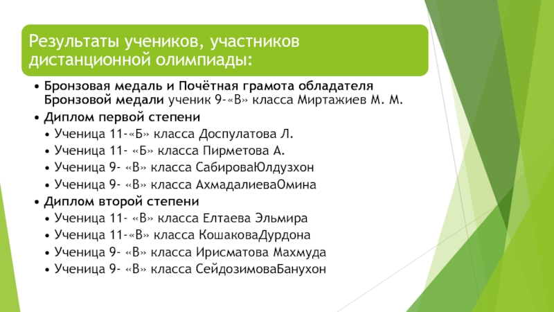 общей средней школы имени А. Навои Тюлькубасского района ЮКО