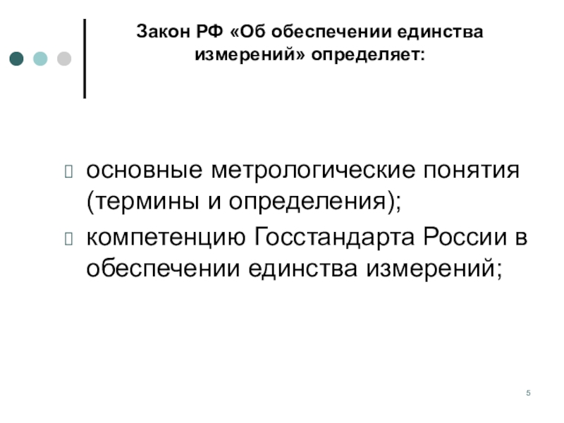Слайд 5Закон РФ «Об обеспечении единства измерений» определяет: