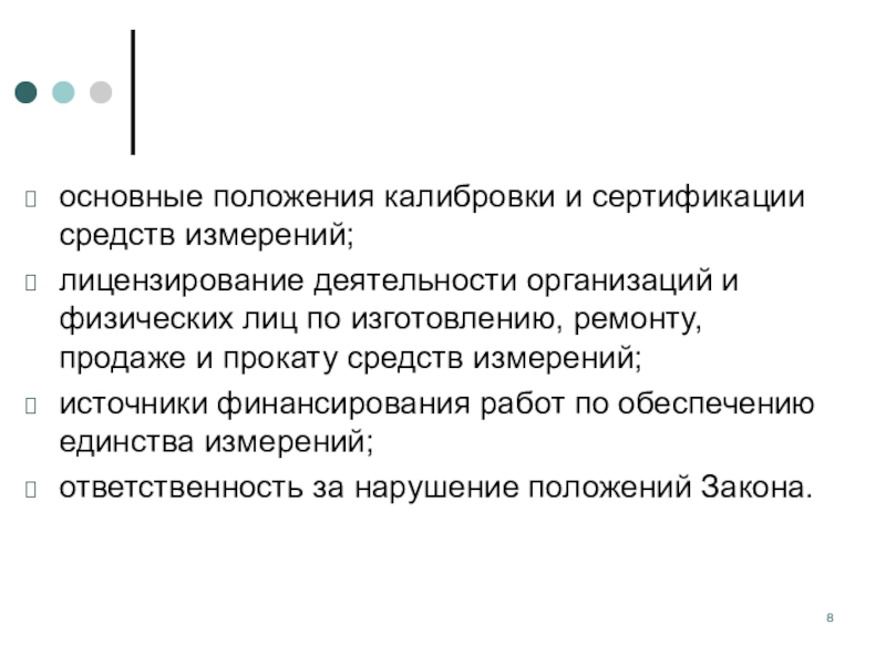 Слайд 8основные положения калибровки и сертификации средств измерений;