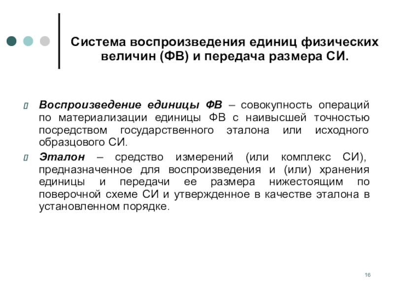 Система воспроизведения единиц физических величин (ФВ) и передача размера СИ.