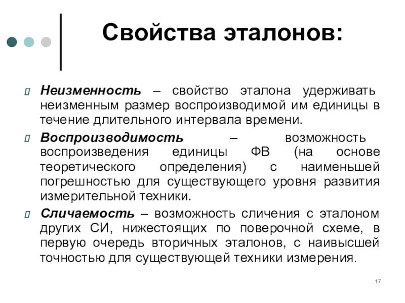 Неизменность – свойство эталона удерживать неизменным размер воспроизводимой им единицы