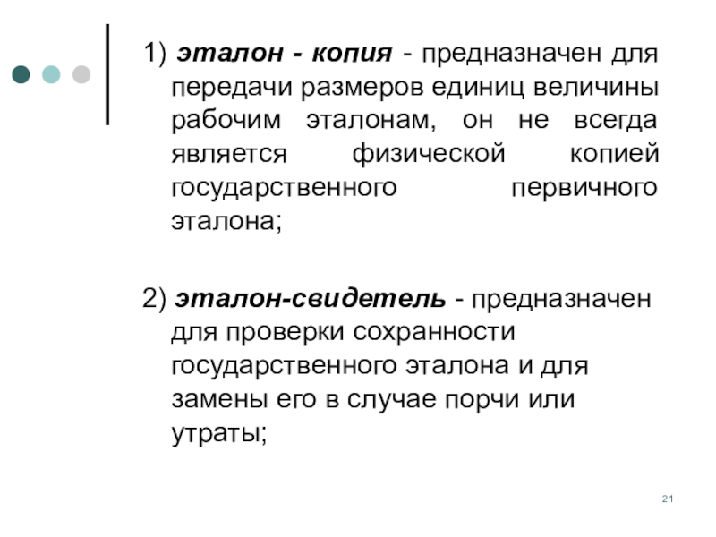 Слайд 211) эталон - копия - предназначен для передачи размеров единиц величины