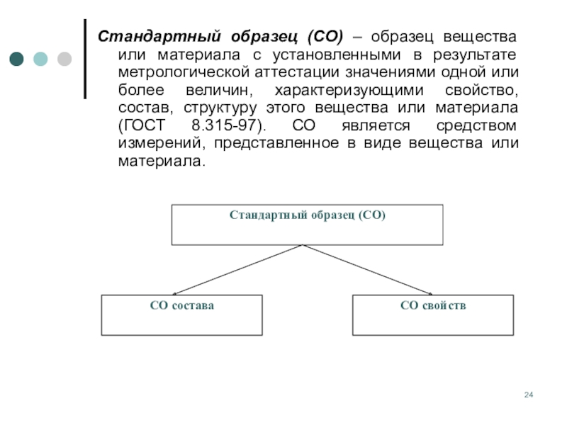 Слайд 24Стандартный образец (СО) – образец вещества или материала с установленными в
