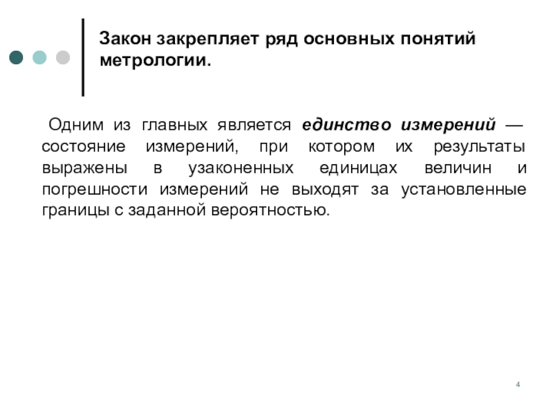 Слайд 4 Одним из главных является единство измерений — состояние измерений, при котором