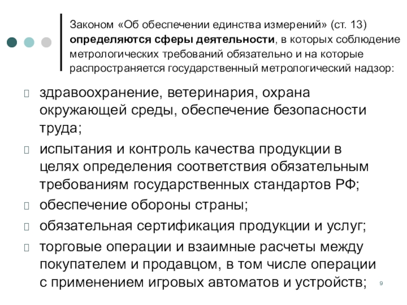 Слайд 11 Закон определяет Государственную метрологическую службу и иные государственные службы обеспечения единства