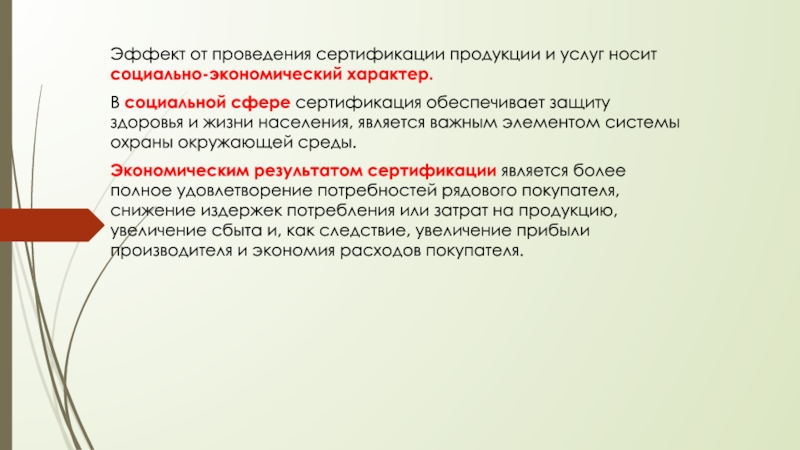Эффект от проведения сертификации продукции и услуг носит социально-экономический характер.