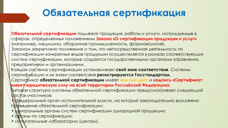 Слайд 14Обязательная сертификация