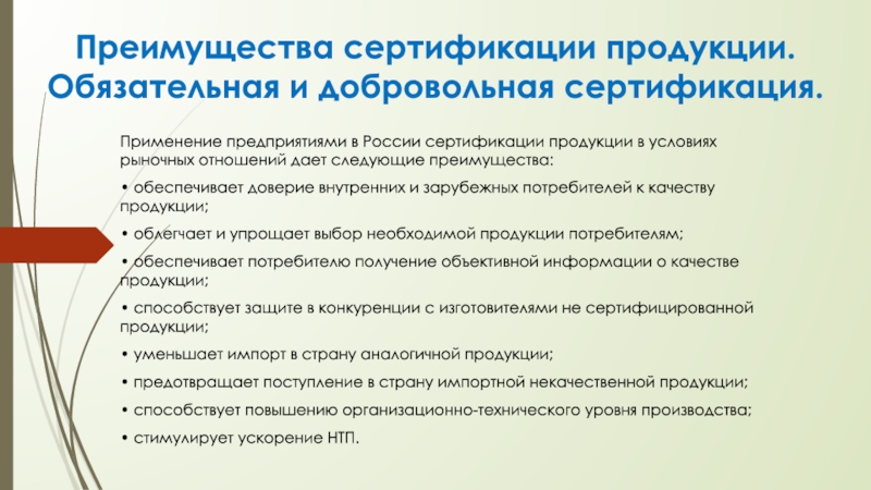 Слайд 11Преимущества сертификации продукции.
