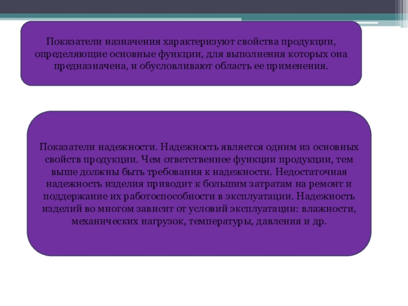 Показатели надежности. Надежность является одним из основных свойств продукции. Чем ответственнее функции продукции, тем выше должны быть требования к надежности. Недостаточная надежность изделия приводит к большим затратам на ремонт и поддержание их работоспособности в эксплуатации. Надежность изделий во многом зависит от условий эксплуатации: влажности, механических нагрузок, температуры, давления и др.