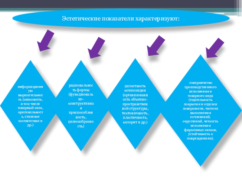 совершенство производственного исполнения и товарного вида (тщательность покрытия и отделки поверхности, чистота выполнения сочленений, округлений, четкость исполнения фирменных знаков, устойчивость к повреждениям).