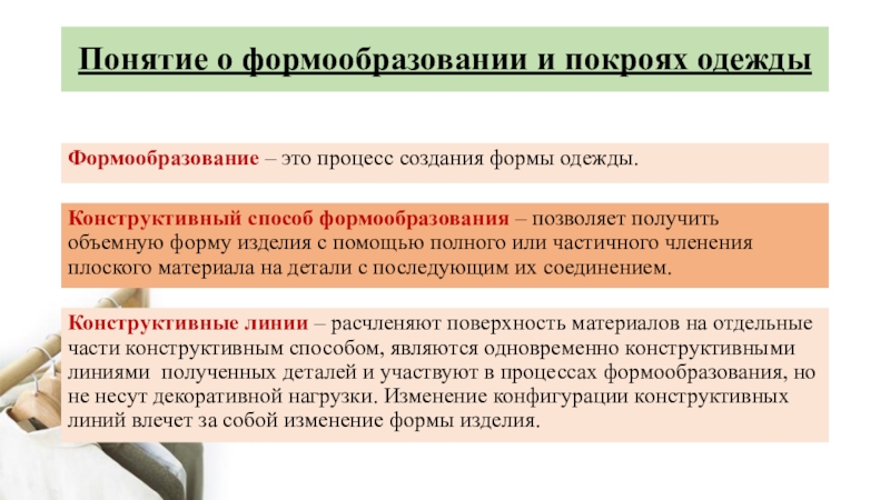 Конструктивные линии – расчленяют поверхность материалов на отдельные части конструктивным способом, являются одновременно конструктивными линиями полученных деталей и участвуют в процессах формообразования, но не несут декоративной нагрузки. Изменение конфигурации конструктивных линий влечет за собой изменение формы изделия.