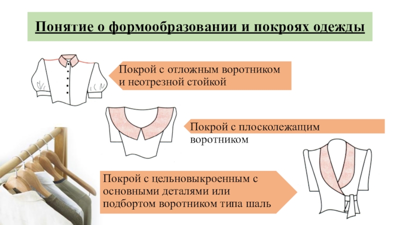 Покрой с цельновыкроенным с основными деталями или подбортом воротником типа шаль