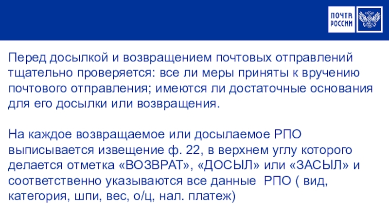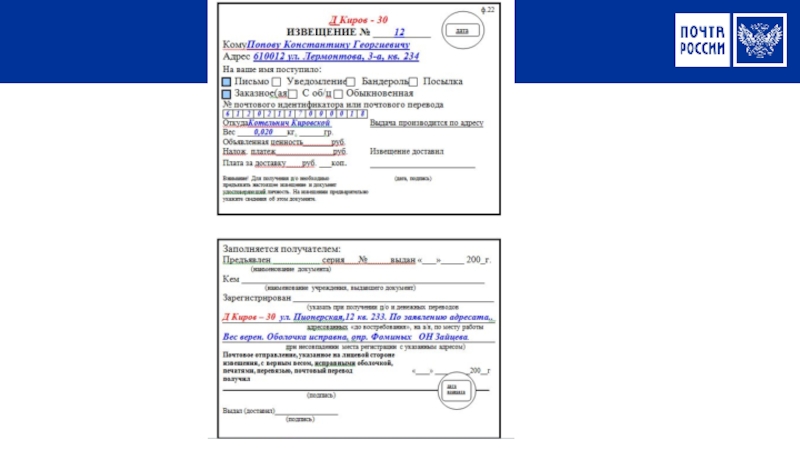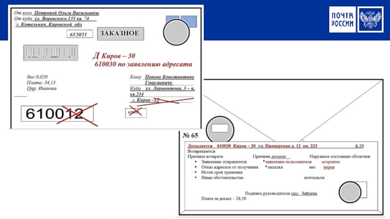 При смене места жительства адресата.