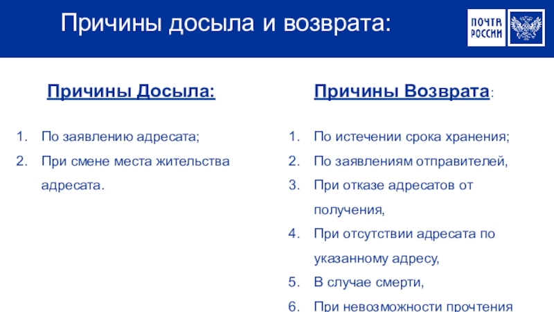 Причины Досыла: