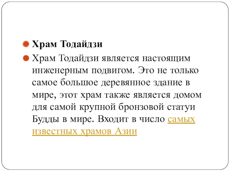 большое деревянное здание в мире, этот храм также является домом для самой крупной бронзовой статуи Будды в мире. Входит в число самых известных храмов Азии