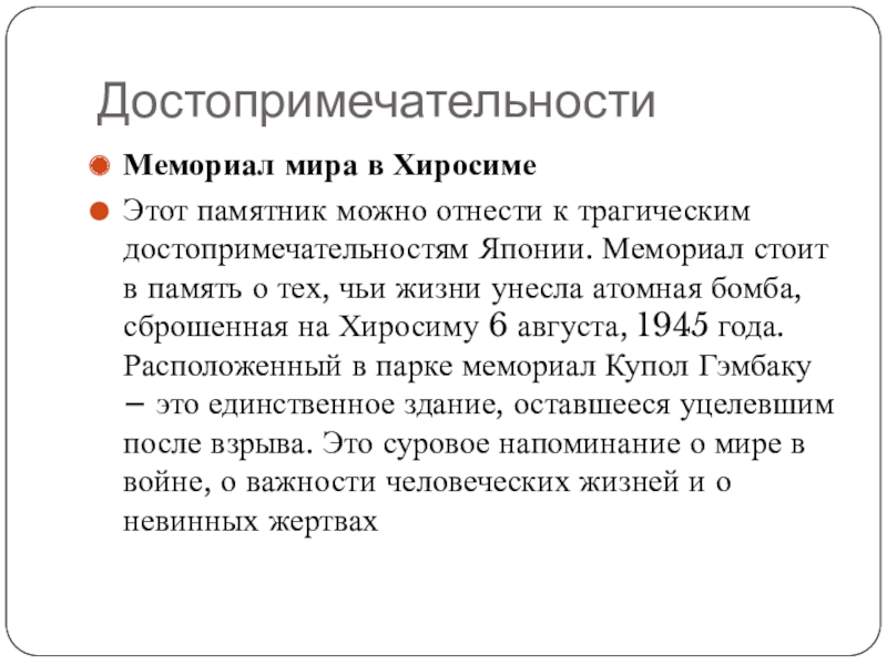 Этот памятник можно отнести к трагическим достопримечательностям Японии.
