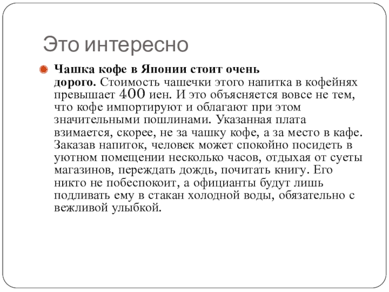 Чашка кофе в Японии стоит очень дорого. Стоимость чашечки этого напитка
